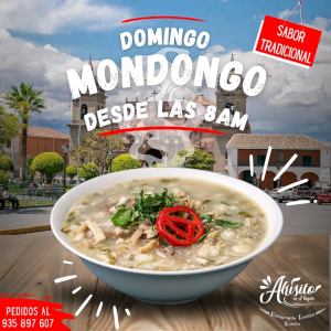 Mondongo: Un platillo tradicional de la cocina latinoamericana que consiste en una sopa espesa preparada con estómago de vaca y vegetales como zanahorias, papas y maíz logrando un sabor unico y esquisito.